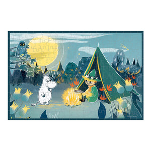 This 200-piece Moomin puzzle by Barbo Toys is a beautifully designed puzzle that brings the beloved Moomin characters to life. The illustration features a blue-coloured peaceful nighttime camping scene with Moomintroll and Snufkin by a glowing campfire.