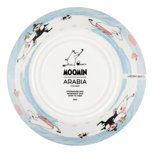 Beautiful light blue Moomin Arabia bowl 15cm, Ice swimming. Material: vitroporcelain. Machine washable, oven and microwave-safe. Designed in Finland. Made in Thailand.
